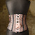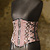 Unterbrustkorsett aus Satin, abwechselnd mit Netz, Spitze und Chiffon überzogen. Das Korsett hat Zierschnürungen und hat extravagante Metallschliessen im Vorderteil.