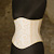 Unterbrustkorsett aus PVC und besticktem Taft, im Vorderteil wurden im Muster Perlen aufgenäht.
